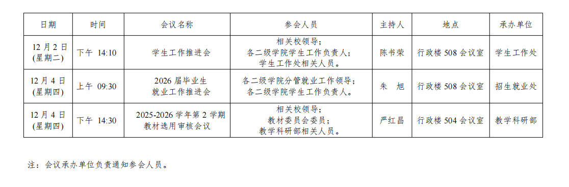 西安交通大学城市学院2025-2026学年第一学期第14周(2025年12月8日至2025年12月14日)主要会议...