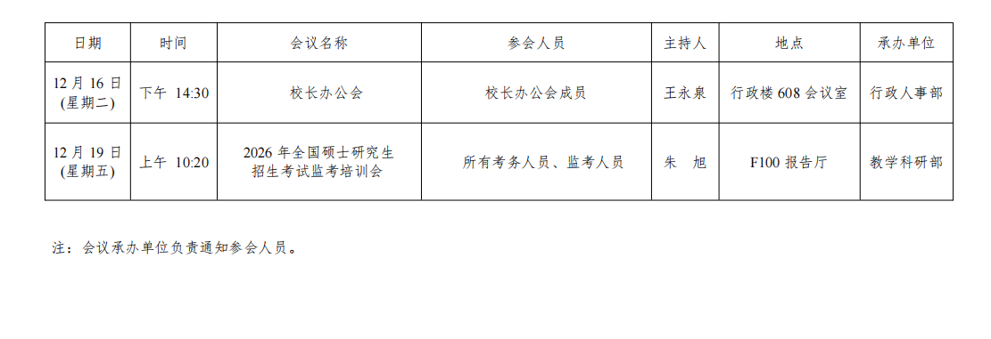 西安交通大学城市学院2025-2026学年第一学期第15周(2025年12月15日至2025年12月21日)主要会议安排