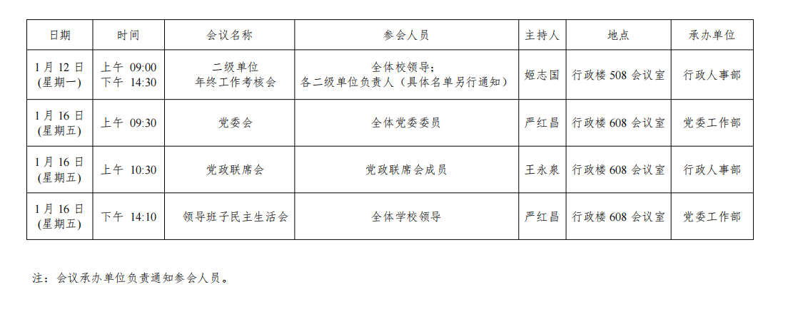 西安交通大学城市学院2025-2026学年第一学期第19周(2026年1月12日至2026年1月18日)主要会议安排