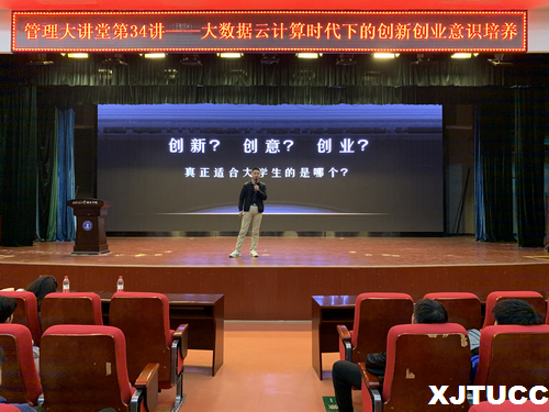 为推进大学生创新创业训练计划,强化创新创业能力训练,增强大学生在大数据云计算下的创新创业意识,管理系于11月5日晚在教二报告厅举办了“管理大讲堂——大数据云计算时代下的创新创业意识培养”专题讲座。出席讲座的嘉宾及老师有管理系副主任郭关科、2004级毕业生姜宇飞、学生工作主管刘健、2016级优秀创业学生代表郝旭峰。讲座由刘健主持。