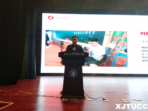 随后,2016级郝旭峰以自己的创业项目——“拾忆留声”为例,向大家讲述了自己在校期间参加创新创业类比赛的经验及经历,并鼓励大家多参加各种创新创业竞赛,更鼓励学生跨专业、跨年级组队,锻炼自己的能力,要努力发展成为全面的综合性人才。
