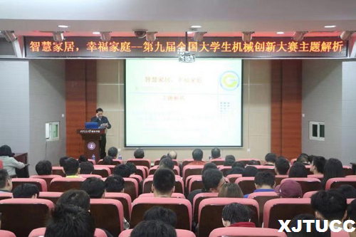 为推动和鼓励师生踊跃参加学科竞赛,积极筹备第九届全国大学生机械创新设计大赛,机械工程系于10月21日下午特邀全国大学生机械创新设计大赛组委会委员、大赛秘书长王晶教授做了题为“智慧家居,幸福家庭—第九届全国大学生机械创新大赛主题解析”主题报告,我院教学服务中心主任陈晓南老师参加会议,会议由机械工程系主任刘吉轩主持,机械系全体教师及全体备赛学生聆听报告。