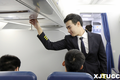 此次走访交流活动分为航空模拟仓讲解和模拟演习两部分。讲解部分由咸阳职业技术学院的老师为学生们介绍了航空模拟舱的内外部构造、设施和用途,同时也提醒大家在客舱服务当中的“端、拿、倒、送、推、拉”等一系列标准动作的注意事项。模拟演习部分由我院传播系老师指导学生进行模拟演习,将“站姿、行走、步速、转身、微笑”等一系列动作进行了示范,并在同学们练习过程中对他们不规范动作及时进行调整。