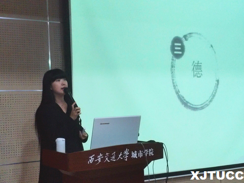 在张莹老师简单介绍了此次讲座的目的和意义后,主讲嘉宾陈晋老师开始了精彩的讲授。陈老师围绕关键词“立,德”,结合中国传统文化经典著作及饱含的哲学道理,阐述了文化、道、德的深刻含义及内在意义,用千里之行始于足下等经典诗词进行德育,并从方向目标、规则境界等方面为同学们讲解在实际中以何立德。接着,陈老师继续围绕传统文化,切合大学生实际,为同学们讲述了立德为何,希望大家能做到心善渊而沉静致远,与善仁而平等仁爱,言善信而诚信守诺,动善时而善动善静。报告历时一个半小时,全场凝听。