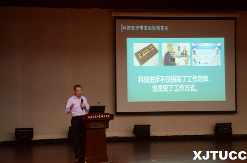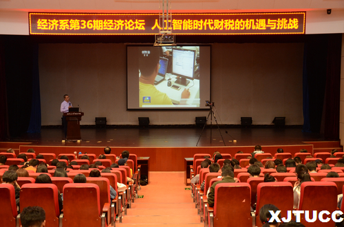 为了贯彻落实企业经营管理中企业财税管理内容,加强当代大学生对税法知识的学习,进一步提高纳税意识,了解企业财税管理的基本方法和措施,西安交通大学城市学院经济系于10月15日在教二报告厅举办了经济系第36期经济论坛“人工智能时代财税的机遇与挑战”。莅临本次大会的有伯君财税创始人文前老师、伯君财税副总经理梁虹、营销部经理梁增辉、新媒体视觉传达师吴卓超、经济系主任杨健全、副主任张武康、经济统计学专业负责人李茂盛、国际经济与贸易专业负责人张美丽、财政学专业负责人张娜、学生工作主管廉宇婷、团工委书记王经洲等。此外,还有财政学专业相关老师和各位辅导员老师参会。本次大会由董子萌和刘力瑞同学主持。