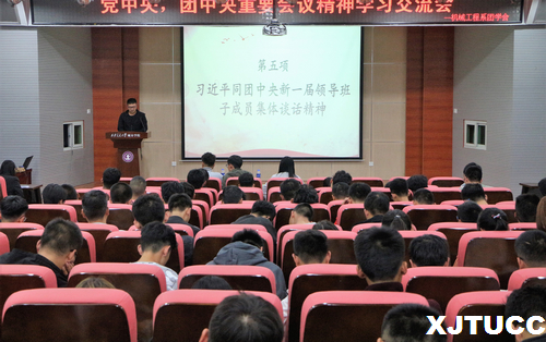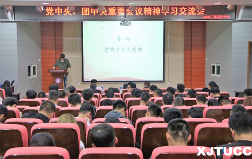 为了使团学干部干事进一步了解党中央、团中央新精神,推动新时代青年和团学工作实现新发展,西安交通大学城市学院机械工程系于10月8日晚在F100教室展开党中央、团中央重要会议精神学习交流会,团学工作负责人韩潇潇老师特邀参会,团学会干部以及全体2018级新干事参加了这次会议。