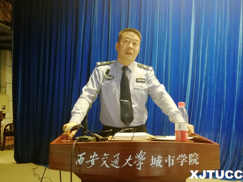 9月28日晚,西安交通大学城市学院2018级新生法制安全教育讲座在大学生活动中心举行。学院保卫部专门邀请了公安西安经开分局尚稷路派出所任友宁副所长为2017级2000余名新生做了题为“用安全托起成长的风帆”的法制安全教育专题讲座。讲座由学院保卫部陈涛部长主持。