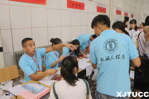西安交通大学城市学院于8月25日、26日开展迎新工作。机械工程系提前在中快餐厅楼下布置了迎新服务站,方便新生及家长休息,并由我系志愿者将新生指引至新生报名处注册。
