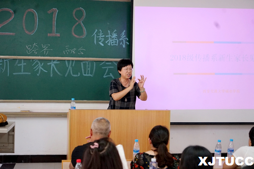 传播系主任张蓉老师首先向新生家长说明学院师资力量与管理模式,后指明传播系三类专业的就业方向,明确培育应用型人才的方略目标。结合生活现状,张老师对新时代“信息传播”概念做出新解释,强调筛选、甄别信息的重要性,加工、呈现信息须富多样性。“融媒体”“跨界”发展盛行的当下,无论是政府、企业、个体,都有传播需求,复合型人才万众所需。传播系的学生应当在把握理论的基础上,自主学习,拓展知识面,积极参与竞赛、活动,培养兴趣、发掘特长、发挥专长。传播系签约的多方实习基地,也会为学生提供更多实践机会。讲话最后,张老师强调大学生不仅要注重知识储备、能力培养,更重要的是学会做人、做好人。