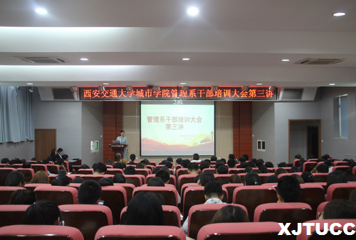 为了树立正确的思想,提高学生干部的责任意识,树立自身学风榜样,加强学风建设,完善作为一名干部所应具备的思想觉悟、品德品性,加强道德教育,从根本上树立目标与追求。西安交通大学城市学院管理系于5月28日在F100举办学生干部培训大会第三讲。参加本次大会的嘉宾老师有思政教学部陈晋、管理系学生工作主管刘健、团学专项负责人吴江菊。此次大会由陈晋老师担任主讲。