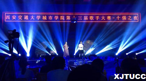 西安交通大学城市学院第十三届校园歌手大赛总决赛于5月16日晚在活动中心拉开帷幕。学院各系学生主管、院团委老师、各系团工委书记、老师等出席了本次晚会。本次活动由赵淦楠和张子晨主持。