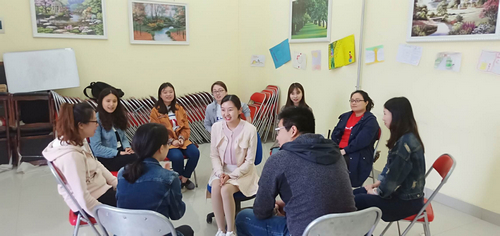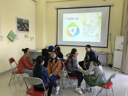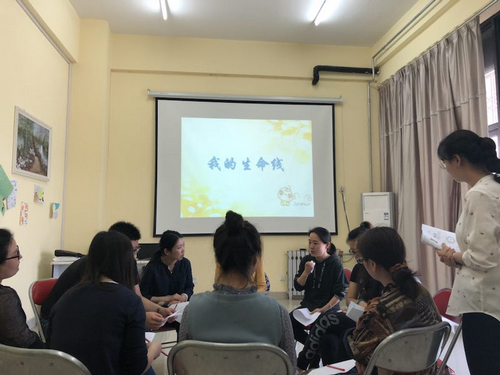 培训活动自4月8日至4月26日,分四次开展。首次培训中,段老师介绍了团体辅导的内涵、适用范畴及基本发展阶段,通过体验式培训,从团体辅导的热身环节、订立团队契约、分组行动到组建团队,鼓励老师们敞开心扉,增进交流,建立良好的团队关系。第二次团辅中,段老师带领成员利用“情绪雕塑”、“镜中人”游戏感受情绪语言、提高共情能力,通过分组竞赛促进团队合作,激发身体潜能。第三次团辅中,通过一系列认识自我的活动安排,促进成员自我探索,利用团体资源解决成员近期的困惑,增进团体信任感。最后一次团辅中,利用趣味接龙、荒岛求生等游戏热身,优点轰炸让成员的心与心更加贴近,生涯环游让成员们打开与自身心灵的对话,感受与自己身体的“连结”。