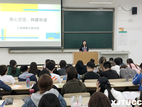 4月17日在E400开展“用心交往,构建和谐”心理健康教育主题讲座,本次讲座由艺术系心理专员王茜老师主讲,艺术系2017级全体学生参加。王老师分别从大学生面对的主要心理问题、增进身心健康的方法与途径和大学生人际交往问题等几个方面进行讲解,并结合实际案例帮助学生培养良好的心理素质和自尊、自爱、自律、自强的优良品质。本次讲座内容贴近学生思想,通过实际心理现象的解析帮助学生了解常见心理问题产生的主要原因及其表现,能以科学的态度对待心理问题。