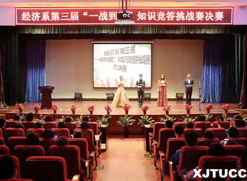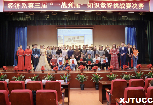为营造良好的校园文化氛围,拓展同学们的知识视野,普及大学生的课外知识,推动校园文化建设。4月19日晚,西安交通大学城市学院经济系第三届“一战到底”知识竞答挑战赛决赛在教二报告厅拉开帷幕。出席本次决赛的嘉宾有学生服务中心主任张学堂老师、传播系学生工作主管陈杜昊老师、学生工作主管樊超老师、管理系团工委书记吴江菊老师、机械系团学工作负责人韩潇潇老师、土建系团学工作负责人张莹老师、经济系主任杨健全老师、经济系副主任史冬梅老师、经济系学生工作主管廉宇婷老师、经济系团学工作负责人王经洲老师以及经济系学工办各位老师们。本次比赛由巩程越、薛雨舟、高田和李金泽主持。