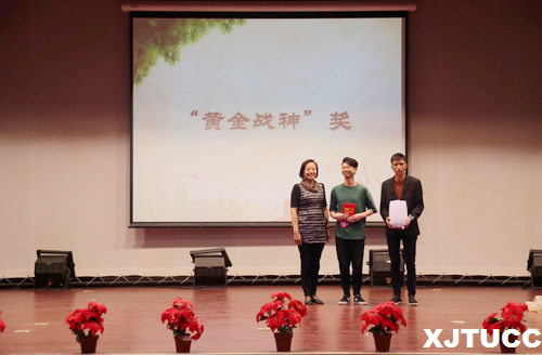 黄翊同学获得“黄金战神”称号,由经济系副主任史冬梅老师为其颁发证书和加湿器一台。