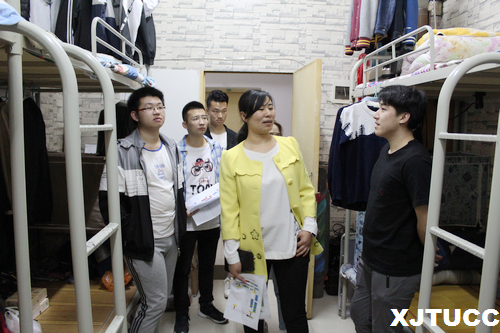 本次检查主要针对各年级评选的优秀宿舍以及发现的问题宿舍。在1号楼女生宿舍,老师们着重检查宿舍卫生的整洁程度、物品的收纳摆放以及是否使用大功率电器。女生宿舍总体卫生干净整洁,床铺上物品及其它生活用品摆放整齐,能给人一种温馨怡人的感觉,并且没有使用大功率电器,未发现违章用电,宿舍安全管理制度完善。在一些优秀宿舍中,老师们还发现了许多值得大家共同学习的收纳之法。在1号楼内专设的“学生之家”,供学生们在宿舍自习使用,减少平时的荒废时间,充分利用课余时间学习,受到了大家的一致好评。