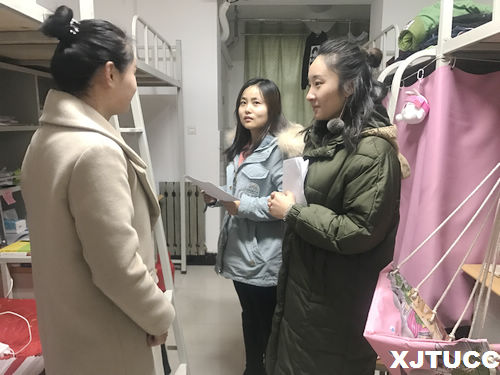 为了给广大学生提供一个安全、舒适的生活环境,近期,四号创优工作部组织举行宿舍安全卫生检查月活动,旨在“改善学生生活环境,消除冬季宿舍安全隐患”。在四号创优工作部部长王姣、副部长韩潇潇、电信系团工委书记李璐、辅导员丁玎、唐玮、白洁、张敏娜带领学生干部、党员、积极分子、先进青年组成了检查组,对四号楼全体宿舍及二号楼电信系全系宿舍进行检查。