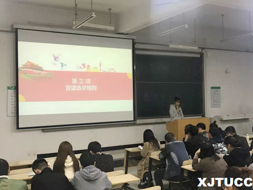 团员大会暨学生大会在嘹亮的团歌中拉开帷幕,首先,计算机系团工委书记刘一凯老师宣读《西交城团联[1]号》文件,帮助大家了解“双代会”是什么,为什么要召开双代会。接下来,计算机系团工委副书记刘玉箱宣读了“双代会”代表产生办法及选举原则。然后选举工作正式开始,全体学生和共青团员通过扫描二维码、听取工作人员宣读了解到36名代表候选人推荐人的详细信息和个人简历,在充分思考、慎重考虑后投下了自己宝贵的一票,选出自己心中的代表。