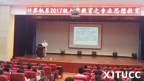 为了使2017级新生了解专业相关知识,明确今后专业学习方向,计算机系分别于9月14日和9月18日在教二报告厅开展计算机系2017级新生入学教育之专业思想教育。此次教育分别由计算机系首席教授李联宁老师、计算机系首席教授刘均老师担任主讲,系主任缪相林教授、学工办老师及2017级新生参会,系学生工作主管刘敏涛老师主持。