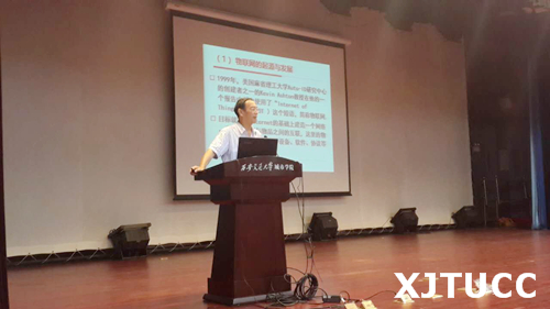 李联宁教授首先从“什么是物联网?”介绍了物联网的起源与发展、定义与组成等基本概念。他通过智能物流、智能家居等现实生活中的应用,向与会新生讲解物联网专业学习内容及其重要技术,让同学们深刻认识到物联网专业今后的发展趋势。