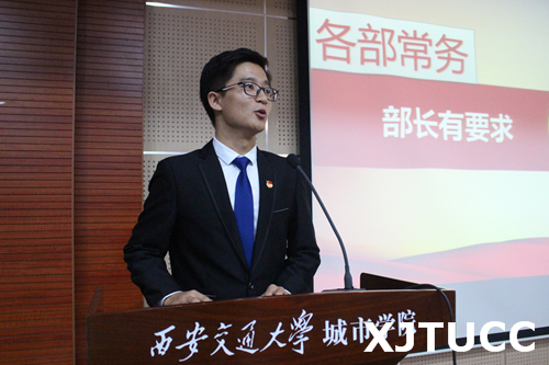 最后,团委职能部门各常务副部长发表了讲话,何阳同学认为办公室工作责任大于一切,郝严森同学表示遇到任何困难都不要放弃,王煜超同学认,尽管在座的同学都是精心挑选,但仍旧需要通过自己的工作来证明自己,孙浩雨同学表示工作效率应该放在第一位,以上各常务副部长们的讲话让在场新生对各部门和部长有了更深的认识。