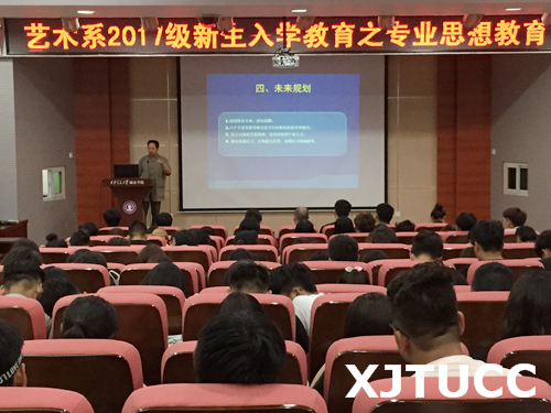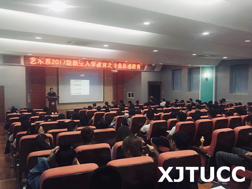 张老师从艺术系各专业的设置、发展,系师资队伍、教学情况以及系专业活动等几方面为新生作了详细介绍。系主任解安宁教授发表了总结性讲话,从专业与社会发展、人才需求等方面向同学们说明专业学习、专业实践的重要性,并要求同学们正确认识所学专业,不断提升专业艺术能力。