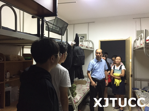 为了了解新生学习、生活、思想状态,帮助新生更快适应、融入大学,更好地搭建新生与班主任之间的桥梁,9月7日晚,西安交通大学城市学院外语系常务副主任韩红建副教授,2017级班主任许崇钰老师、曲向超老师,学工办张天老师和蔺一方老师,深入外语系新生宿舍进行了亲切的走访慰问。