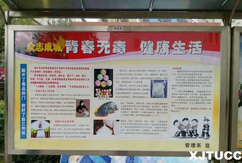 同时,管理系团学工作者制作了“一次吸毒终身毁,莫拿生命赌明天”禁毒主题宣传海报,以图文并茂的形式直观的向大家展示吸毒的危害,告诫同学们,珍爱生命,远离毒品。
