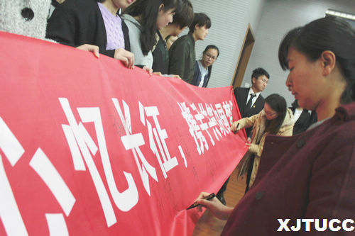 仪式最后,在场师生在横幅签字寄语,预祝本次管理系团日活动圆满举办。通过本次启动仪式,使各级学生干部对本次主题团日活动有了更深入的了解,各班班委也表示将在组织活动的过程中注重回顾历史,发扬红军长征精神,充分弘扬当代大学生的优秀品质。