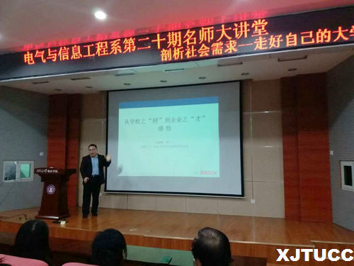 讲座伊始,王建渊博士就电气行业从古至今的发展态势为同学们深刻剖析当前该领域的就业形势并强调学好英语是在行业立足的前提,随后他重点阐述了电子信息技术在分力发电、太阳能发电、轨道牵引、电动摩托车以及民用机械等行业的应用,引导同学们在大学期间做好职业生涯规划。最后王建渊博士寄语在座的大学生大学四年要树立明确目标,努力从学校之“材”向企业之“才”转变。讲座最后,王建渊博士还就老师和同学们提出的问题进行详细解答。