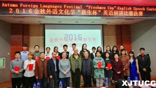 为丰富大学校园生活,营造我院浓郁的英语学习氛围,提高学生英语学习的热情和兴趣,提高学生的口语水平,10月27日晚,由西安交通大学城市学院教学服务中心和外语系举办的“2016金秋外语文化节”之新生杯英语演讲比赛决赛在我院圆满落幕。外语系常务副主任韩红建副教授,副主任赵永生副教授,外教Gurli Woods, Howard Woods及外语系二十余位教师等出席了本次比赛。