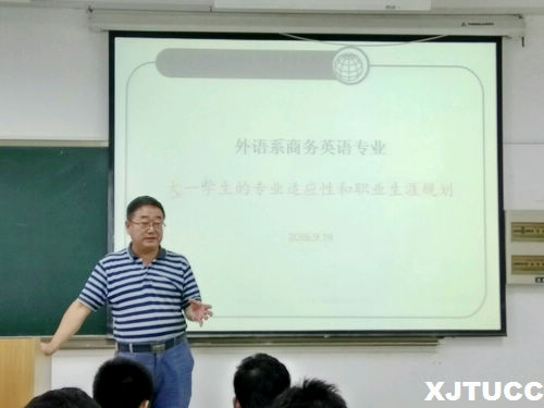 为了帮助2016级新生更好地适应专业学习,了解职业发展方向,明确学习目标,科学规划大学四年学习生活,9月19日-22日,外语系副主任赵永生副教授、日语首席教授李国栋副教授、商务英语专业负责人杜彦龙副译审、分别针对各专业新生进行了新生适应及职业生涯规划教育讲座,新生班主任、辅导员、全体新生参加了讲座。
