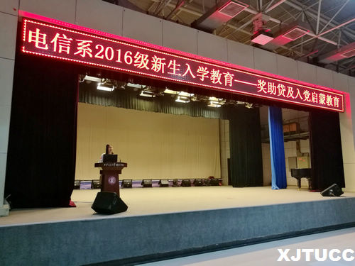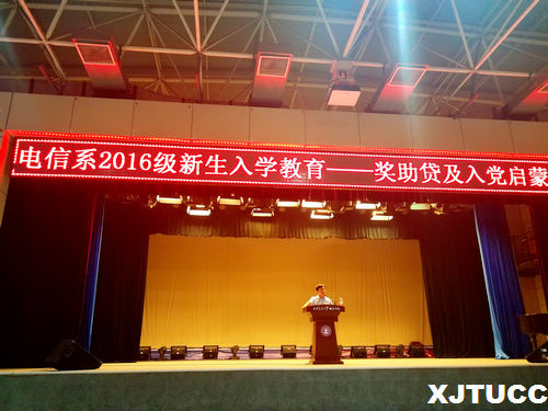 9月18号晚,西安交通大学城市学院电气与信息工程系奖助贷及入党启蒙教育于中快三楼活动中心开展,讲座由电信系学工办主管辛红伟老师主持召开。辛宏伟老师、吴瑶老师为主讲人,丁玎老师、杨春妮老师以及电气与信息工程系全体2016级新生参加活动。