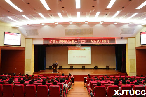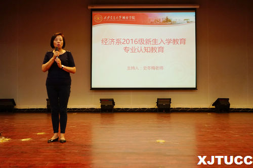 为使16级新生能够尽快适应新的学习环境,明确本专业的学习目标和未来发展趋势,经济系于9月13日晚在教二报告厅开展新生专业认知教育。出席本次会议的有经济系主任杨健全老师、副主任史冬梅老师、主任助理张武康老师、金融专业负责人张美丽老师、国贸专业负责人宋爽老师、统计专业负责人李茂盛老师,辅导员王经洲、刘洋老师以及2016级全体新生,报告由史老师主持。