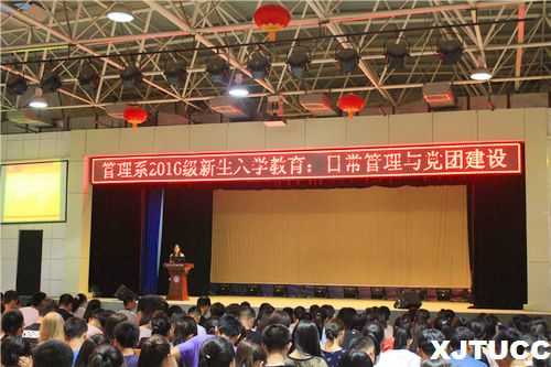 为强化管理机制,达到以班风正校风、营造高校大学生良好成长氛围的目标,管理系于9月12日晚7时在大学生活动中心面向全体新生开展了以“日常管理、党团建设”为主题的入学教育活动。本次活动由管理系学生工作主管刘健、学工办老师张杰、辅导员韩珺、李辉及管理系团学组织干部代表共同出席。活动由管理系学生干部袁亲骎主持。