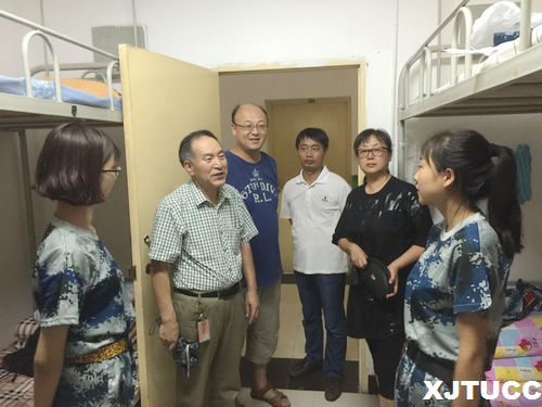 8月25日上午,新生军训期间,计算机系副主任李联宁教授和学生工作主管刘敏涛老师,深入学生宿舍,看望军训学生。进入学生宿舍,副主任询问了学生对军训和大学生活的感受,勉励他们认真训练,锤炼品格,传承军人的优良作风,上好大学“第一课”。