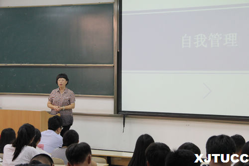 张蓉老师以大学生的自我管理为核心,提出了大学生必须拥有的八种能力:和陌生人交谈的能力、迅速熟悉周围环境的能力、管理自身学业的能力、关爱他人的能力、处理人际关系方面问题的能力、应对生活中大起大落的能力、如何管理金钱的能力以及承担风险的能力。张老师通过生动地讲述,结合真实的案例,与新生们频频互动交流,引来了阵阵掌声。