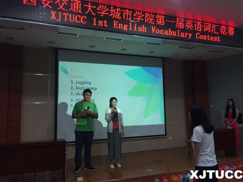 为提高学生英语学习的热情与兴趣,调动学生积极参与单词记忆这一基础学习中来,外语系于6月1日晚7时在F100举行西安交通大学城市学院第一届英语词汇竞赛。外语系副主任赵永生,教师刘慧、张慧、许秀云、许崇钰、陈黎受邀观看了此次比赛。