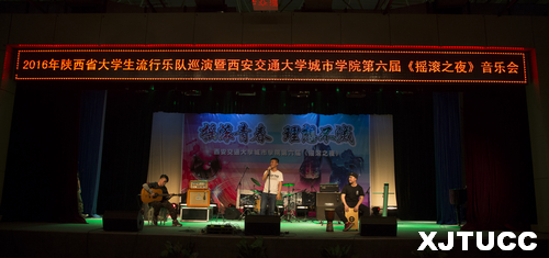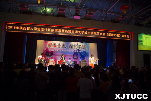5月25日晚7点,由陕西省文化厅、共青团陕西省委员会主办,西安交大城市学院承办的陕西省大学生流行乐队巡演暨西安交通大学城市学院第六届《摇滚之夜》音乐会在学生活动中心举行。此次流行乐队音乐会有来自西安音乐学院、西安文理学院、西安建筑科技大学、西安外事学院等高校的电声乐队为我院学子带来一场充满朝气与活力的摇滚盛宴。出席音乐会的领导及嘉宾分别是:省文化厅、各高校带队老师,我院团委书记吴昊翔,艺术系学生工作主管李成,系团工委书记杨耀聪、马岚、汪成鸿、丁义伟等老师出席了本次晚会。我院学生史青与叶雨萌同学担任主持人。