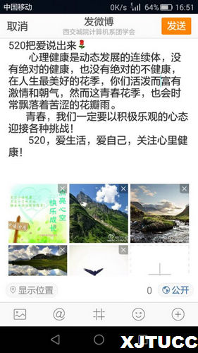 活动期间,我系通过微博平台发布与大学生心理健康成长相关的具有指导意义的小博文。在5月20日当天,我系号召同学们把爱说出来,爱生活、爱自己、关注心理健康。