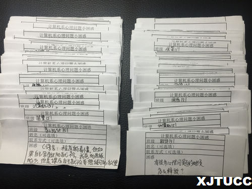 4月至5月,我系在各班级发放《心理小困惑》卡片,搜集学生的心理小困惑,组织全系辅导员老师进学生公寓,对有心理疑惑的学生,针对性的开展大学生心理健康教育。