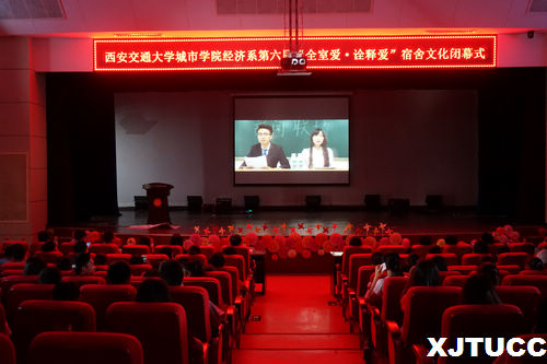 西安交通大学城市学院经济系第六届宿舍文化节“全室爱,诠释爱”闭幕仪式于5月23日晚在教二报告厅成功举行。到场嘉宾有经济系主任杨健全、副主任史冬梅、主任助理张武康、经济系学工主管刘静、管理系团工委书记陈杜昊、经济系团工委书记廉宇婷及学工办的辅导员老师们,晚会由宋雪莹、叶宇萌主持。
