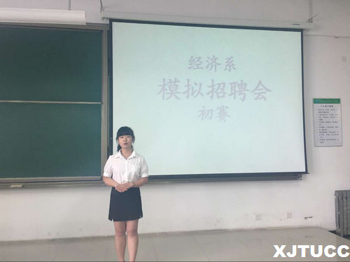 5月23日中午,西安交通大学城市学院经济系第六届“勇往职前”模拟招聘会初赛在教2-218举行。经济系副主任史冬梅、主任助理张武康、系学生工作主管刘静、团工委书记廉宇婷以及学工办叶超担任本次大赛的评委,大赛由张阳同学主持。