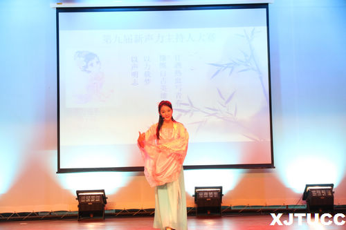 比赛开始,首先是“自报家门”环节。常松恺同学凭借着他风趣的自我介绍,动听的原创歌曲弹唱,幽默的临场脱口秀,赢得了台下观众阵阵掌声。二号选手屈媛以一口流利的陕西方言介绍家乡古都西安,赢得了台下阵阵掌声;四号选手史青则以贯口的形式介绍了她的故乡陕北,营造出轻松愉悦的氛围,感染着在座的观众。在第二环节“搭配主持+才艺展示”中,本届的选手与上一届的学长学姐们搭档主持,展示才艺。其中,三号选手叶宇萌与搭档张佳悦将主持的《城院日食记》—美食厨房搬上舞台,向在座展示别样的美食节目。第三环节为复活赛。前两轮淘汰的六位选手依次上台,随机抽取题目进行论述。以此来考验选手的随机应变的能力。 在此环节中,十号选手刘方舟在对其选题“高三考生毕业后撕书行为”的即兴评述中,逻辑缜密,旁征博引,获得了评委的一致好评,收获了晋级的通行证。
