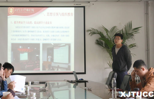 为树立典型、表彰先进、展示共青团的工作风采、进一步加强团组织的自身建设、营造团内争先创优的浓厚氛围,西安交通大学城市学院于4月18日下午在行政楼508举行“五四红旗团工委”的答辩。本次答辩特邀学生服务中心主任张学堂、各系负责学生工作的部分主任和主管、团委老师、团委职能部门的学生干部担任评委,师生共评“五四红旗团工委”。答辩会由组织部李洋同学担任主持。