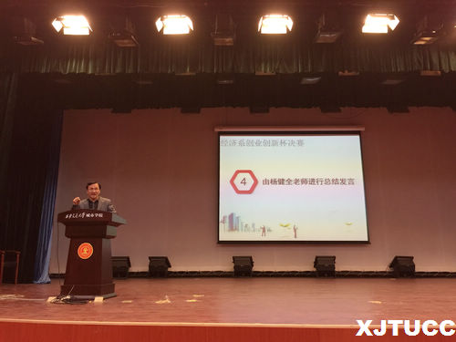 杨健全老师对大赛进行总结发言,他对同学们的优秀表现进行了表扬,鼓励同学们通过此次比赛增强大学生的团队意识,学以致用、学思结合、以赛促学、以赛促教。对指导老师们的辛勤指导给予赞扬,希望在全体师生的共同努力下,经济系的创业创新工作能取得更好的成绩。