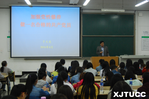 同时,在教学一号楼E100教室,127名预备党员认真聆听了学院党委委员、数学教学部主任于大光教授作的题为“加强党性修养,做一名合格的共产党员”报告。于老师从预备党员加强党性修养的重要性切入主题,引用了毛泽东、周恩来等国家领导人对党性的界定和描述,阐明了加强党性修养的重要意义。尔后,他解读了党性的概念、基本体现和内容。引用青年学生身边的人和事,阐述了党性修养的基本途径和方法。于老师语言幽默风趣,他告诫同学们“千里之行,始于足下”,党性修养也是如此,要坚持从点滴做起,从小事做起。