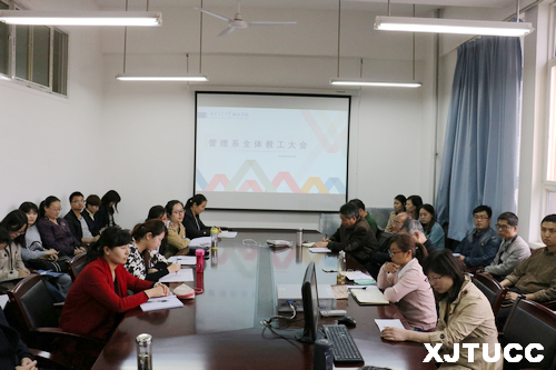 4月14日下午,管理系全体教职工大会在教二-225室召开,管理系主任卫民堂、常务副主任冀祥、副主任郭关科、办公室主任许玮玮、学生工作主管刘健以及全体教师、实验员、辅导员、办公室秘书参加了大会。会议在许玮玮主持下召开。