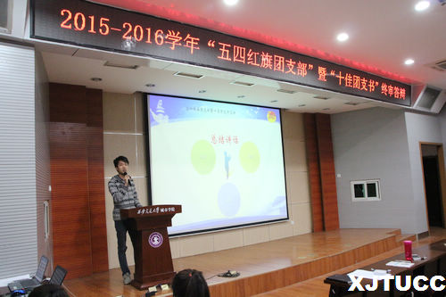 答辩结束后,学院团委组织部部长黄金同学为本次答辩进行了总结。他对参加本次活动的各支部表示感谢,同时希望参加答辩的各支部能够在答辩中发现差距,互相学习,取长补短,使各支部能够形成“学、赶、超”的竞争模式,为团学工作不断添砖加瓦。大会的最后,主持人宣读各支部的答辩成绩。至此,“五四红旗团支部暨十佳团支部书记”终审答辩圆满结束。