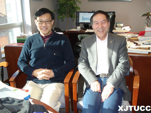 近日,西安交大城市学院计算机系缪相林教授访问了美国俄亥俄州立大学(OHIO STATE UNIVERYITY,简称OSU)计算机系,美国OSU计算机系系主任张晓东教授在办公室接待了缪相林教授。